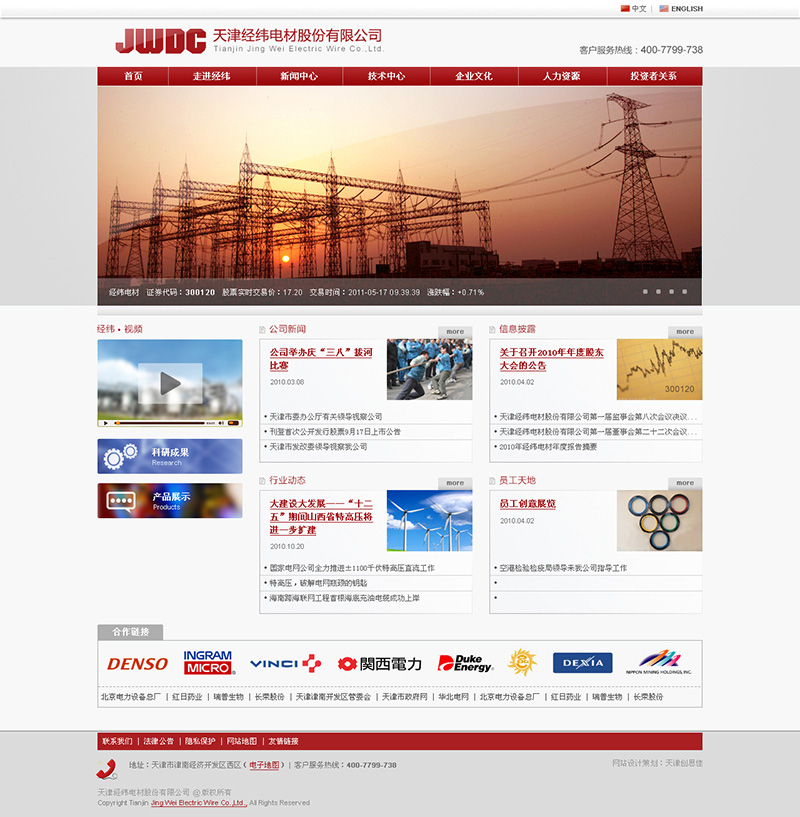 天津經(jīng)緯電材股份有限公司成立于1999年,座落于美麗的渤海之濱——天津市津南經(jīng)濟(jì)開(kāi)發(fā)區(qū)西區(qū)。2008年12月30日,企業(yè)以凈資產(chǎn)折股,由有限公司整體變更為股份公司。2010年9月17日,公司首次公開(kāi)發(fā)行人民幣普通股2,200萬(wàn)股并在深圳證券交易所創(chuàng)業(yè)板掛牌交易,股票簡(jiǎn)稱:經(jīng)緯電材,股票代碼:300120...