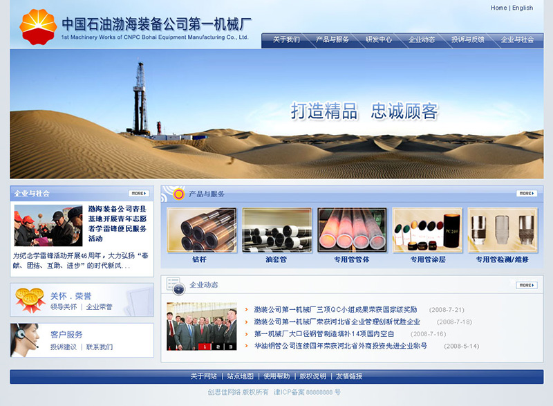 基于目前互聯(lián)網(wǎng)的發(fā)展現(xiàn)狀和公司原有網(wǎng)站更改不方便等問題,現(xiàn)需求符合企業(yè)品牌及文化的網(wǎng)絡(luò)平臺宣傳企業(yè)。渤海石油裝備制造有限公司第一機(jī)械廠是中國石油天然氣集團(tuán)公司所屬石油專用管生產(chǎn)基地,是一個集鉆桿、油套管、管體、石油專用管防腐及鉆桿檢測/修理及于一體的綜合性工廠。工廠前身是華北石油管理局第一機(jī)械廠,始建于1976年,工業(yè)占地面積199萬㎡?,F(xiàn)有職工874人,具有很強(qiáng)的設(shè)計、研制、開發(fā)和生產(chǎn)能力...