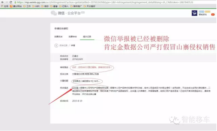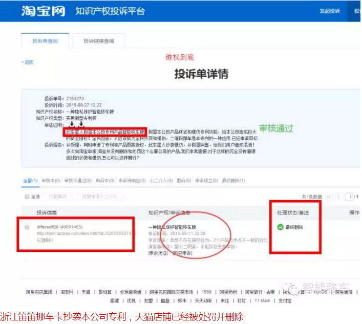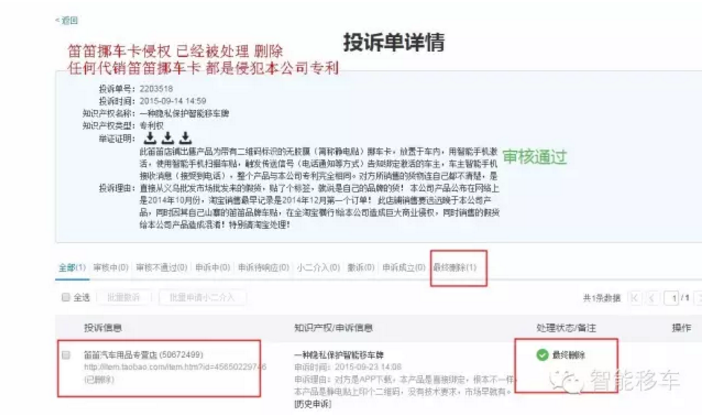 誰說專利權(quán)沒用?有公司抄襲本公司智能移車專利,向阿里巴巴和微信舉報已全部刪除侵權(quán)內(nèi)容和商品